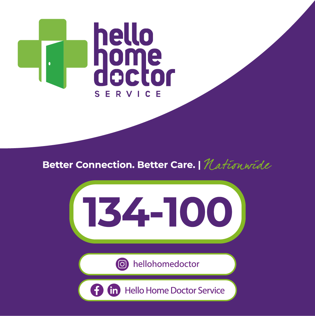 - after 6 pm call "Hello Home Doctor" after hours service - 134 100. - (Triage and may arrange a GP call or Home visit)